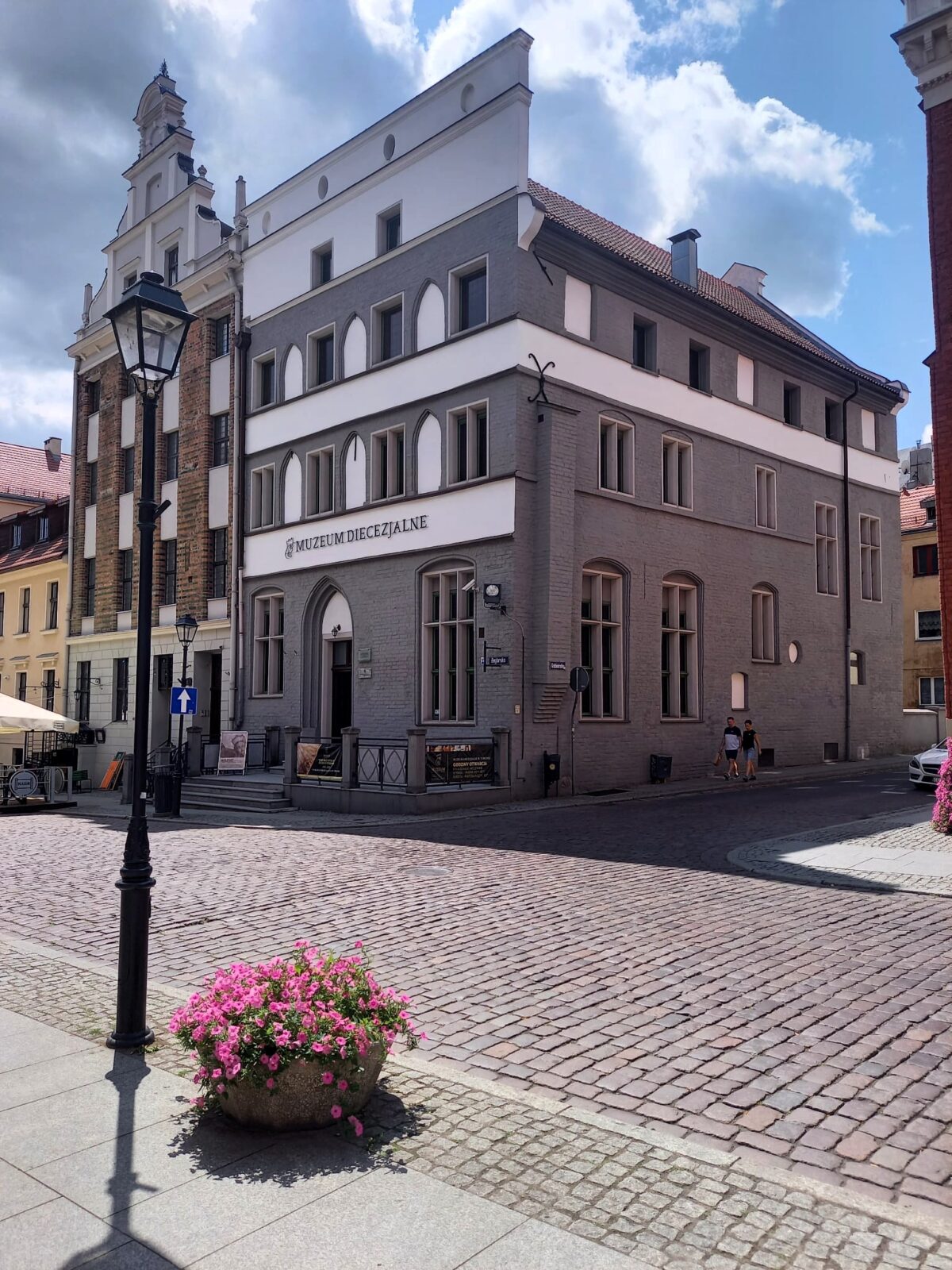 Muzeum Diecezjalne w Toruniu mieści się w dawnej kamienicy mieszczańskiej, zbudowanej na początku XVI w., która jest przykładem toruńskiego domu-składu – kamienicy pełniącej jednocześnie funkcje mieszkalne i magazynowe. Do dzisiaj można w niej zobaczyć hypocaustum – średniowieczny system ogrzewania podłogowego, gotycką umywalkę, kręcone schody, strop belkowo-wsuwkowy i iluzjonistyczne polichromie ścienne.